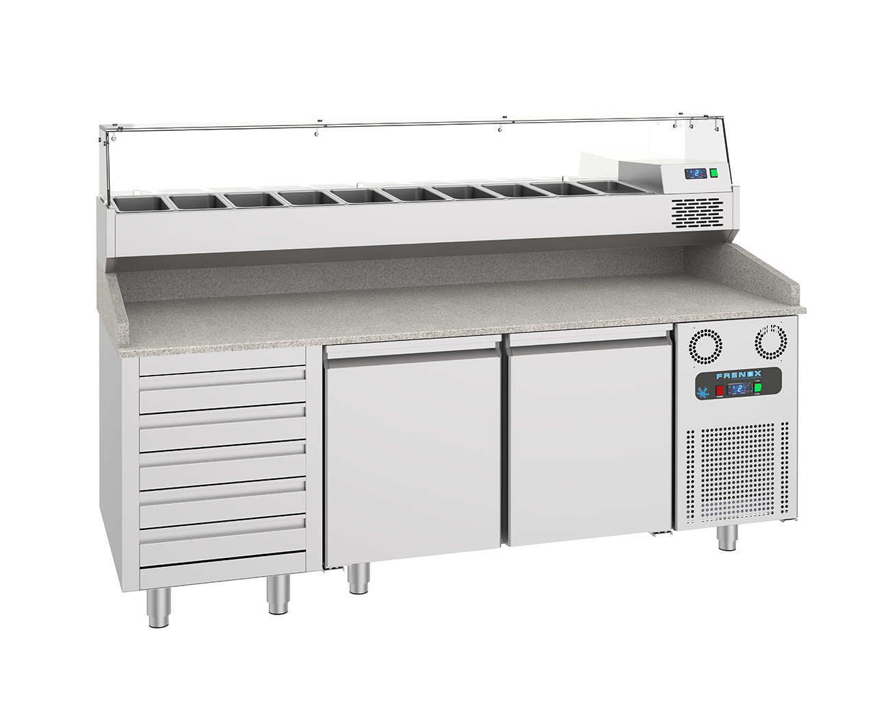 | DSP 210 | +4/+10 | 10 Ad. GN1/3 | 210x39x46 | 233x54x55 | 105 | 304 | 50 mm | R290 | 220 V / 50 Hz | - |